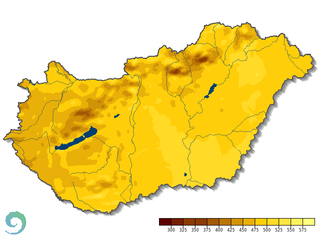 A 23. ábra a 2025. évi globálsugárzás összeg területi eloszlását mutatja be hazánkban. Az Alföldön sütött a legtöbbet a Nap (>500 kJ/cm2), a hegyvidéki területeken volt kevesebb napsütés, ezek közül is kiemelkedik a Bakony (2), valamint a Bükk és a Mátra (2).