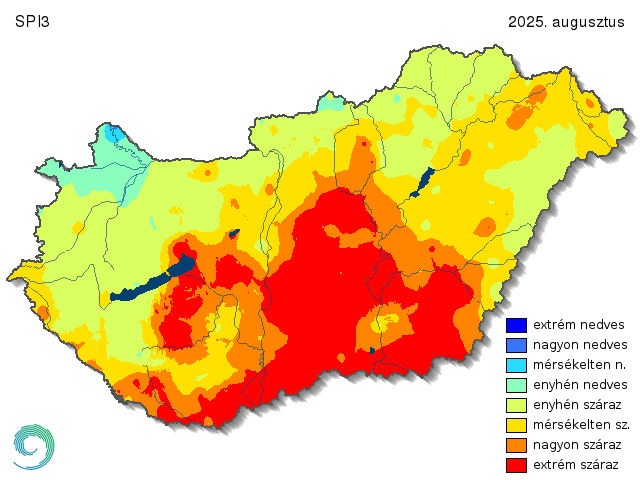 A hathavi SPI területi eloszlása 2025 augusztusában